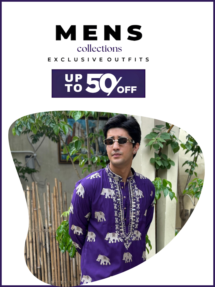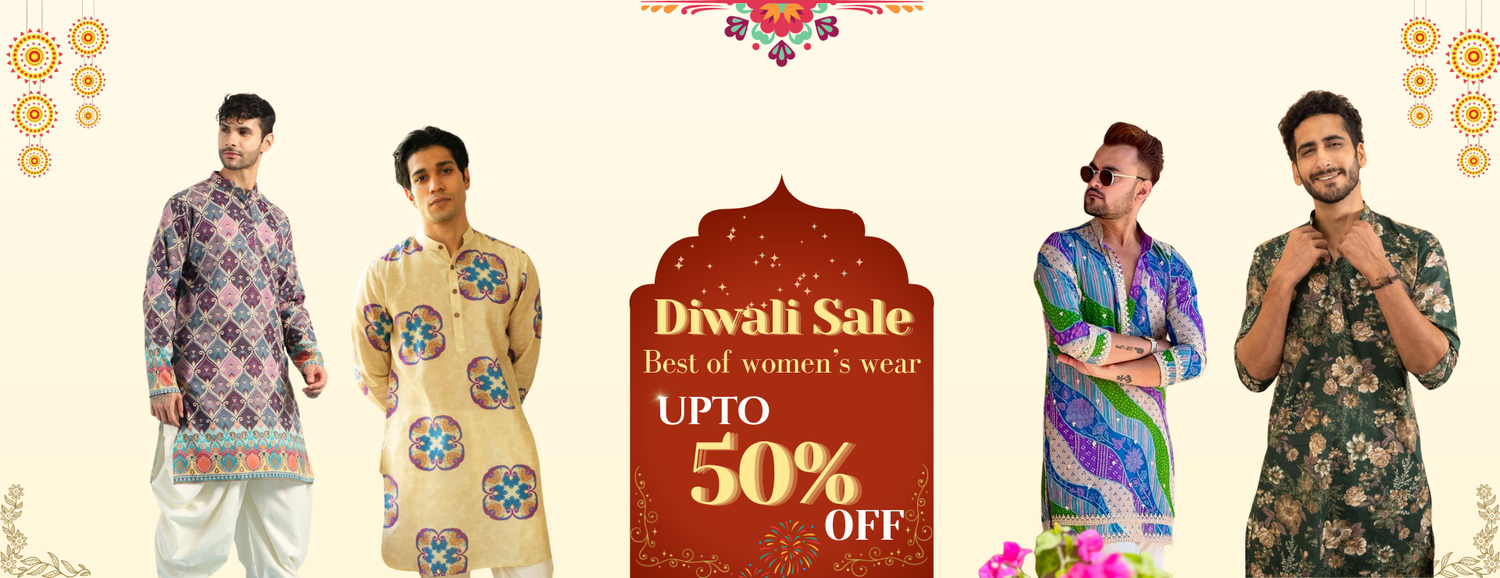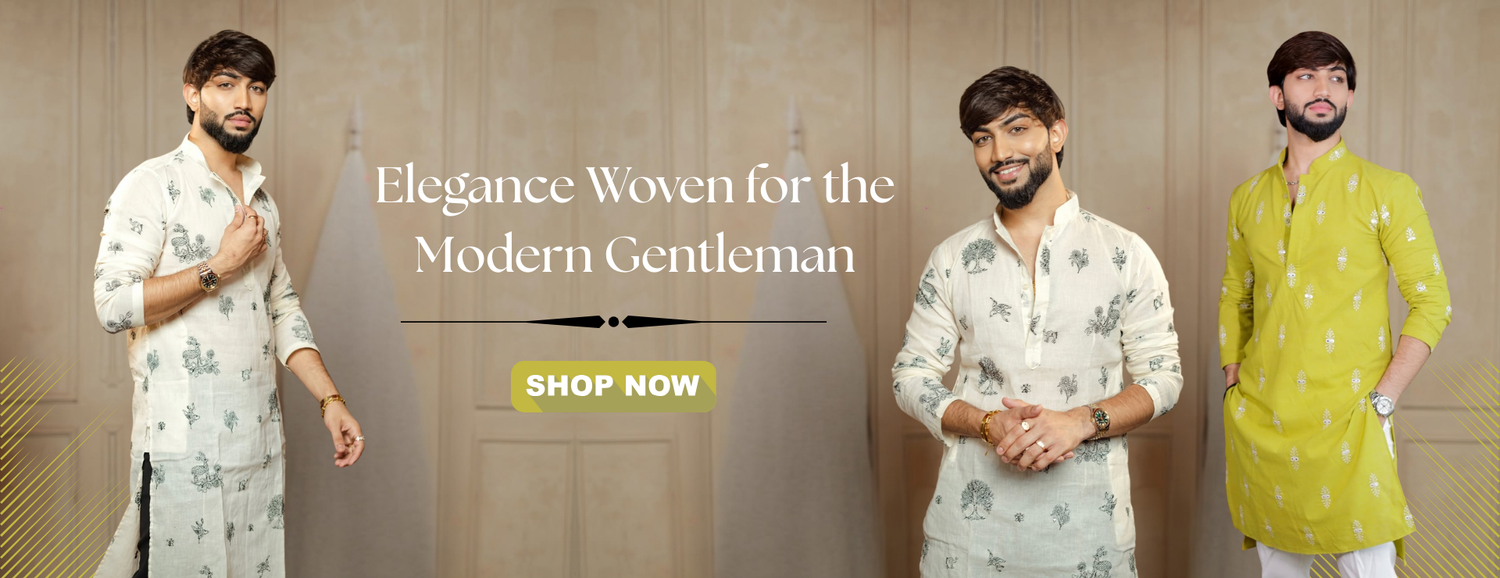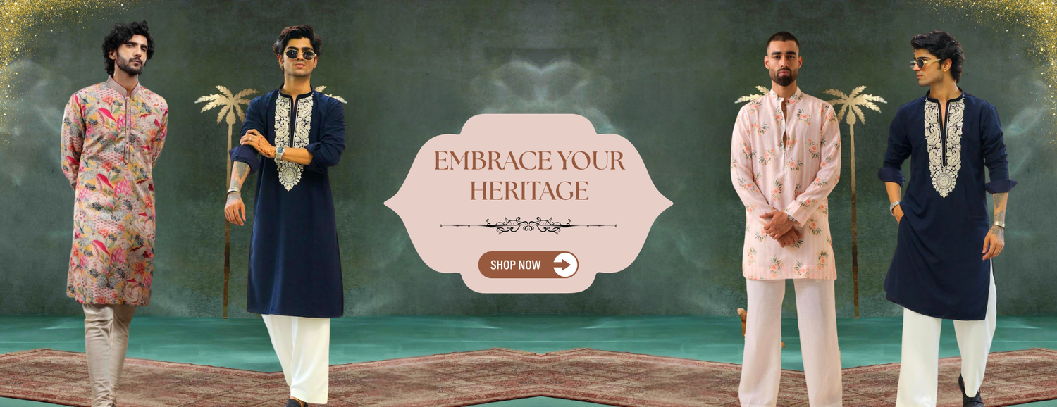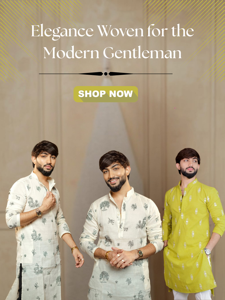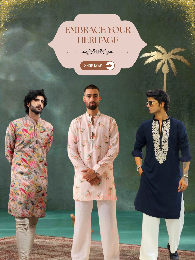 TREE N PEACOCK DAMAN PRINTED WORK KURTA PAJAMA SET FOR MEN'S