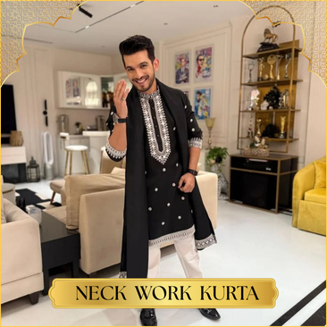 BLACK NECK EMBRODERIED KURTA AND PAJAMA