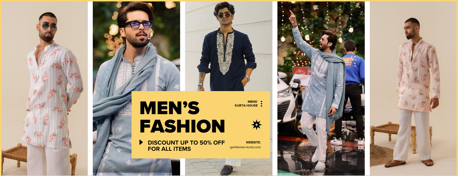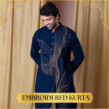 Black Embroidered SEQUIN WORK Men's Kurta with Pajama
