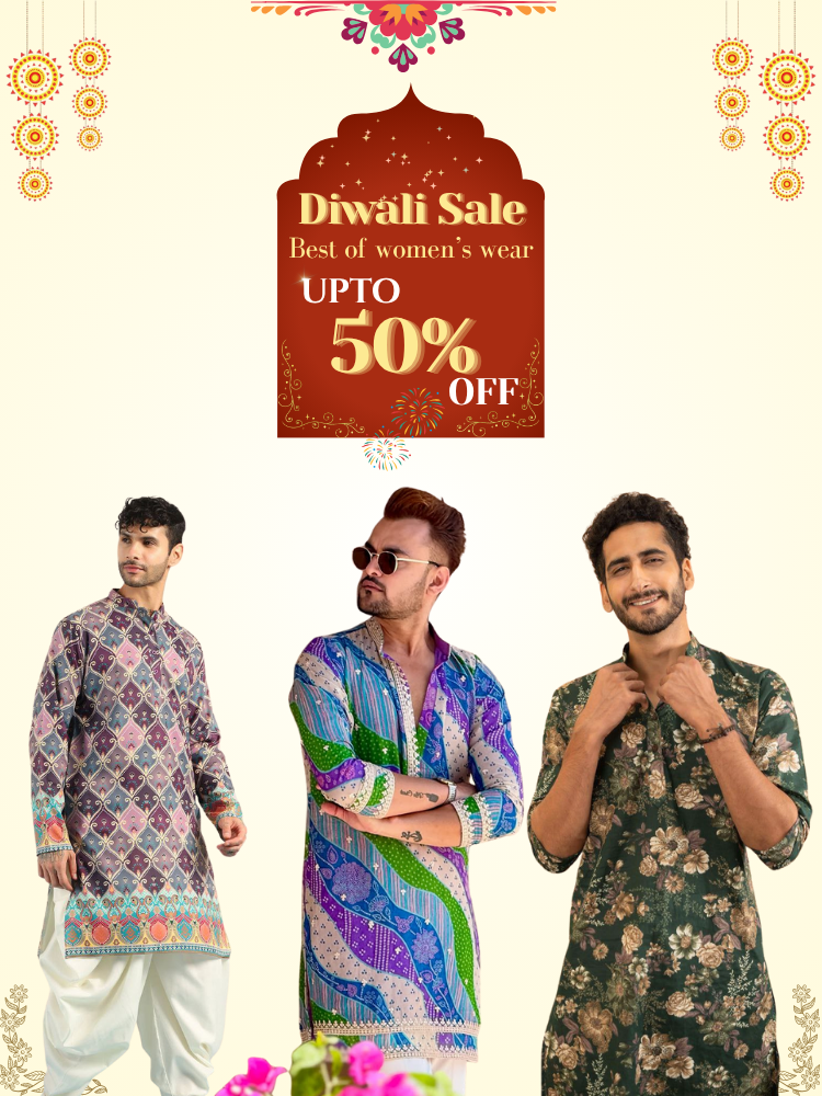TREE N PEACOCK DAMAN PRINTED WORK KURTA PAJAMA SET FOR MEN'S