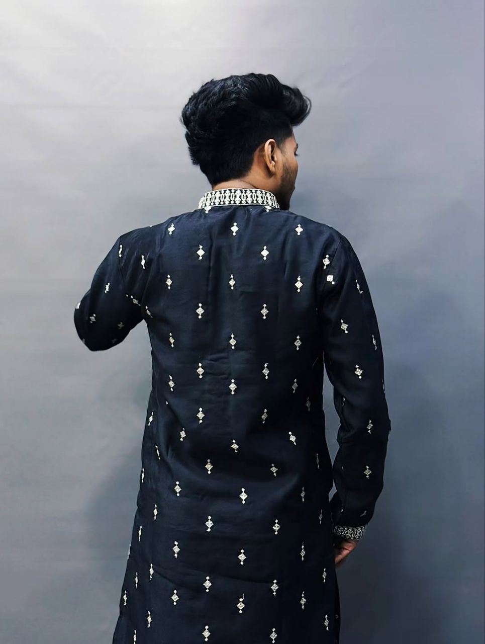 Black Embroidered SEQUIN WORK Men's Kurta with Pajama