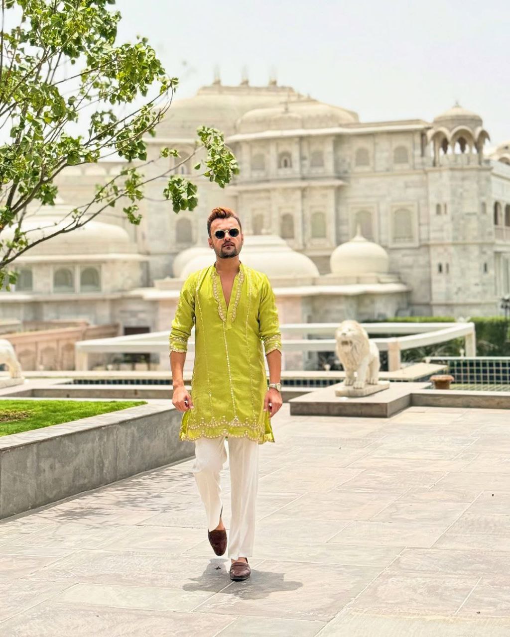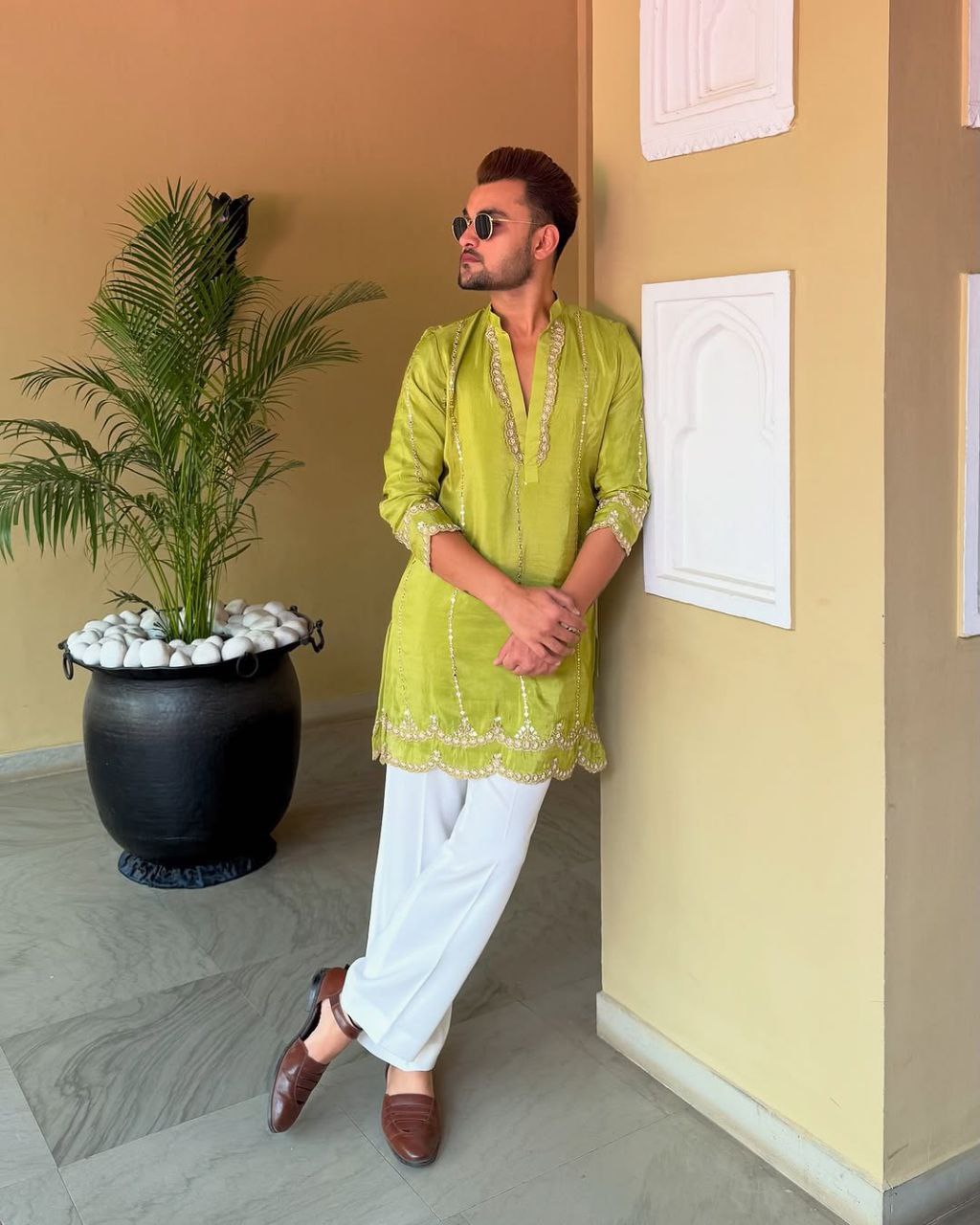 Olive Yellow EMBROIDERED MEN'S KURTA WITH PAJAMA SET