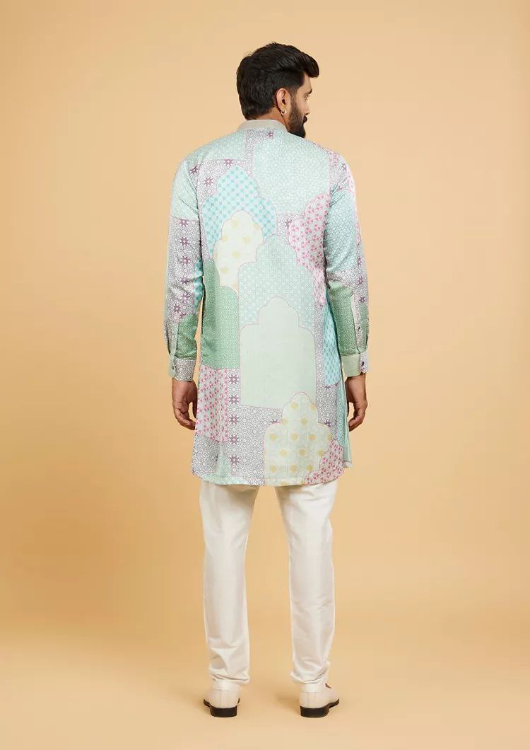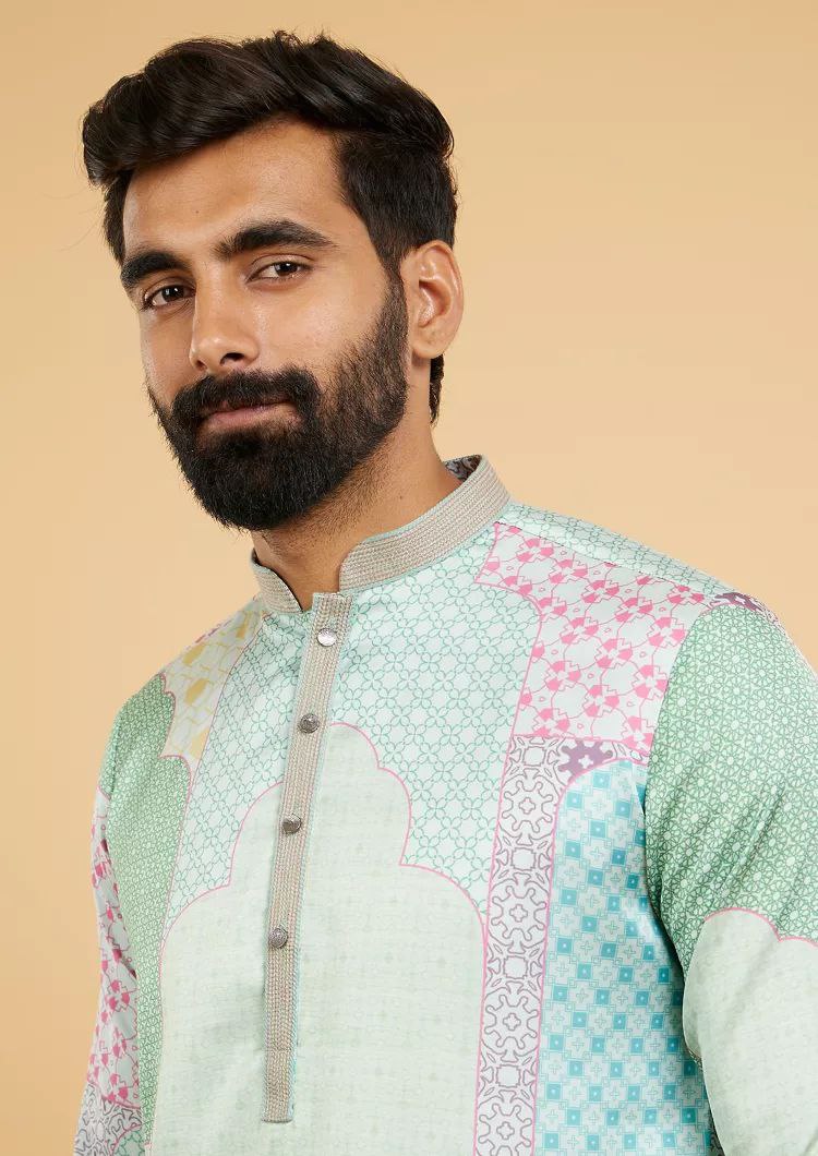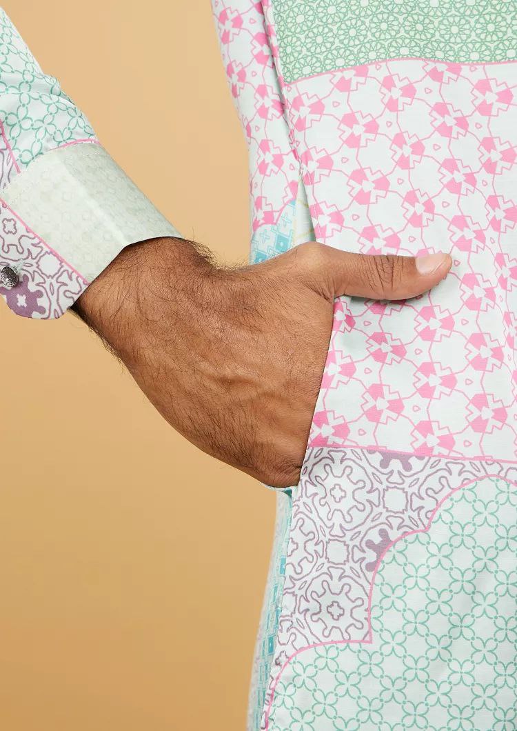 White POWDER ASH PRINTED WORK KURTA PAJAMA SET FOR MEN'S This Digital printed Kurta Is Made of 100% Pure Cotton Fabric With Having Hand digital Printed Prints Over It. Our Attractive Prints Add More Charm to Your Look, Wear This at Any Time Because the Fabric Is So Smooth to Skin That You Will Love It.